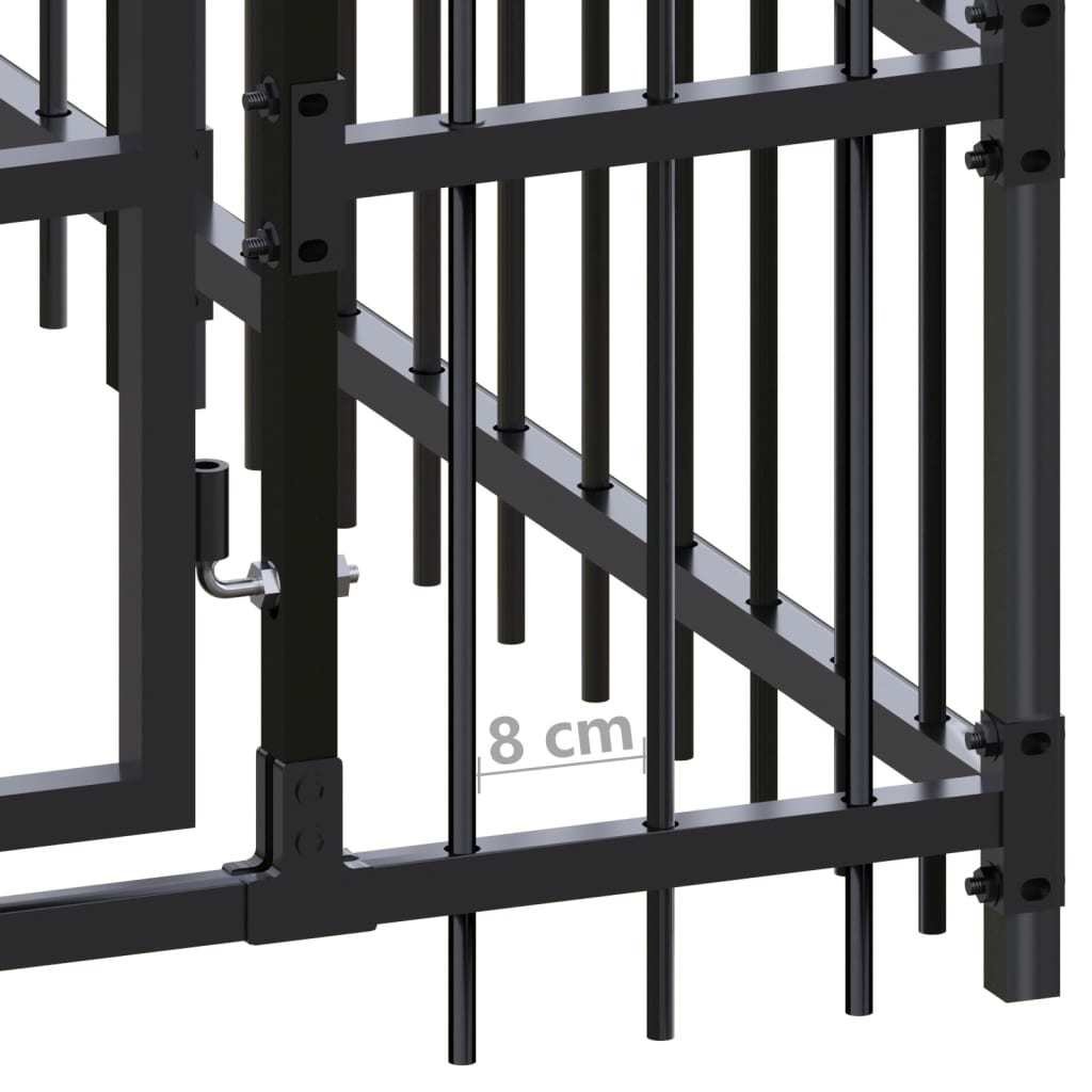 This dog kennel provides ample exercise space. The walls of steel bars help prevent mischief and unexpected accidents while enabling ventilation. Thanks to the sturdy powder-coated steel construction; this dog kennel is durable and built to last. The roof provides protection from sun; rain; snow; as well as other weather conditions. The hinged door with a lockable latch system ensures extra security and safety for your dogs.